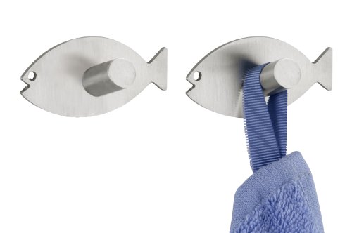 Ⓤ Wenko 4466040100 Crochets Muraux Fish Lot de 2 Acier Affiné Mat